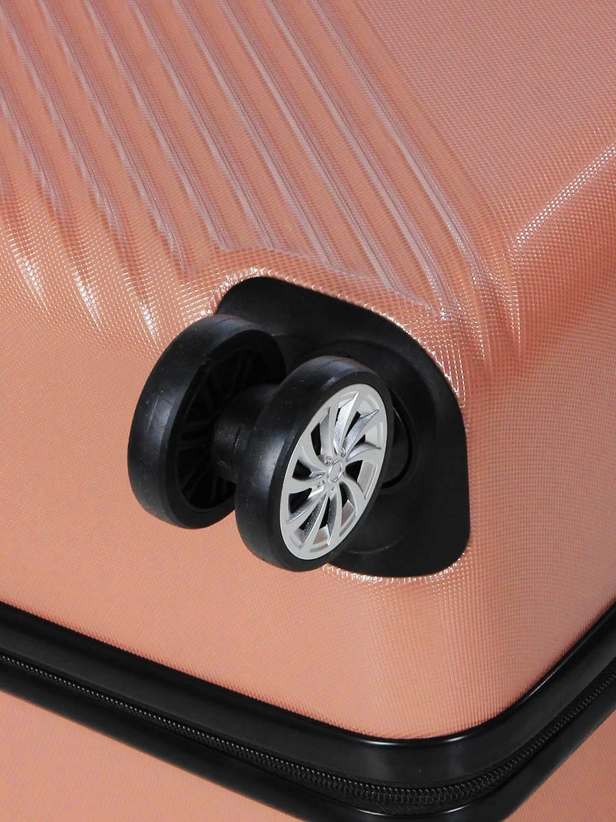 La valise Lys Vancouver glisse avec fluidité sur ses 4 doubles roulettes. sa poignée télescopique permet de la faire filer aussi bien à côté que derrière soi en fonction des préférences de chacun. Ses 2 poignées permettent de la soulever aisément pour la déposer dans le coffre d’un véhicule, par exemple. Enfin, pour des trajets en toute tranquillité, on trouve sur le côté de sa coque une serrure à code.