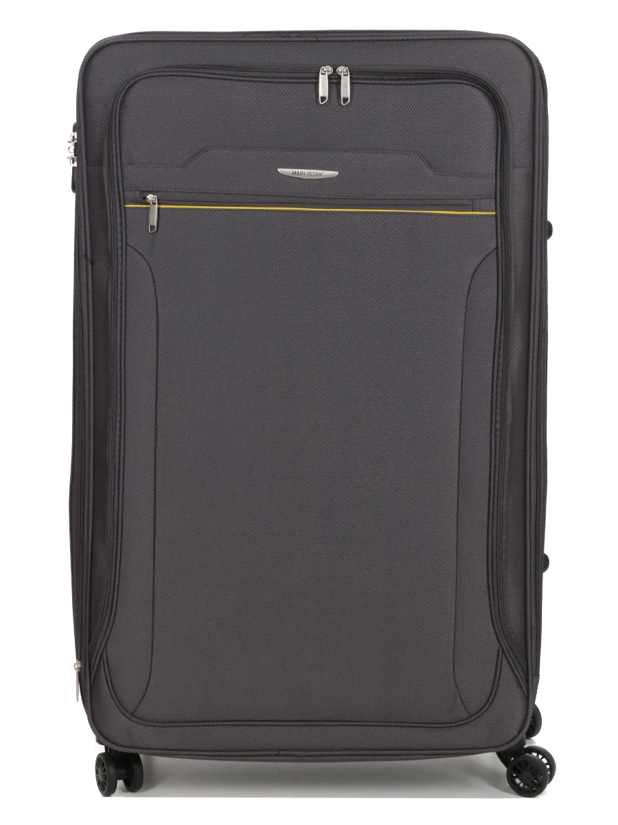 La valise 4 roues Madisson Bristol dispose d’un compartiment entièrement doublé suffisamment spacieux pour y déposer les affaires de 2 adultes et 2 enfants pour une semaine ou pour emporter toutes les affaires des nomades en partance pour le bout du monde pour un mois. Une grande poche zippée permet de sérier à part des vêtements délicats. Pour éviter à son contenu d’être balloté en tous sens au cours du transport, elle est munie de 4 sangles de maintien élastiques. A l’avant, 2 grandes poches zippées permettent de garder à portée de mains certains effets personnels, un pull pour ne pas avoir froid dans le train ou l’avion, le roman en cours de lecture pour s’occuper pendant le voyage…