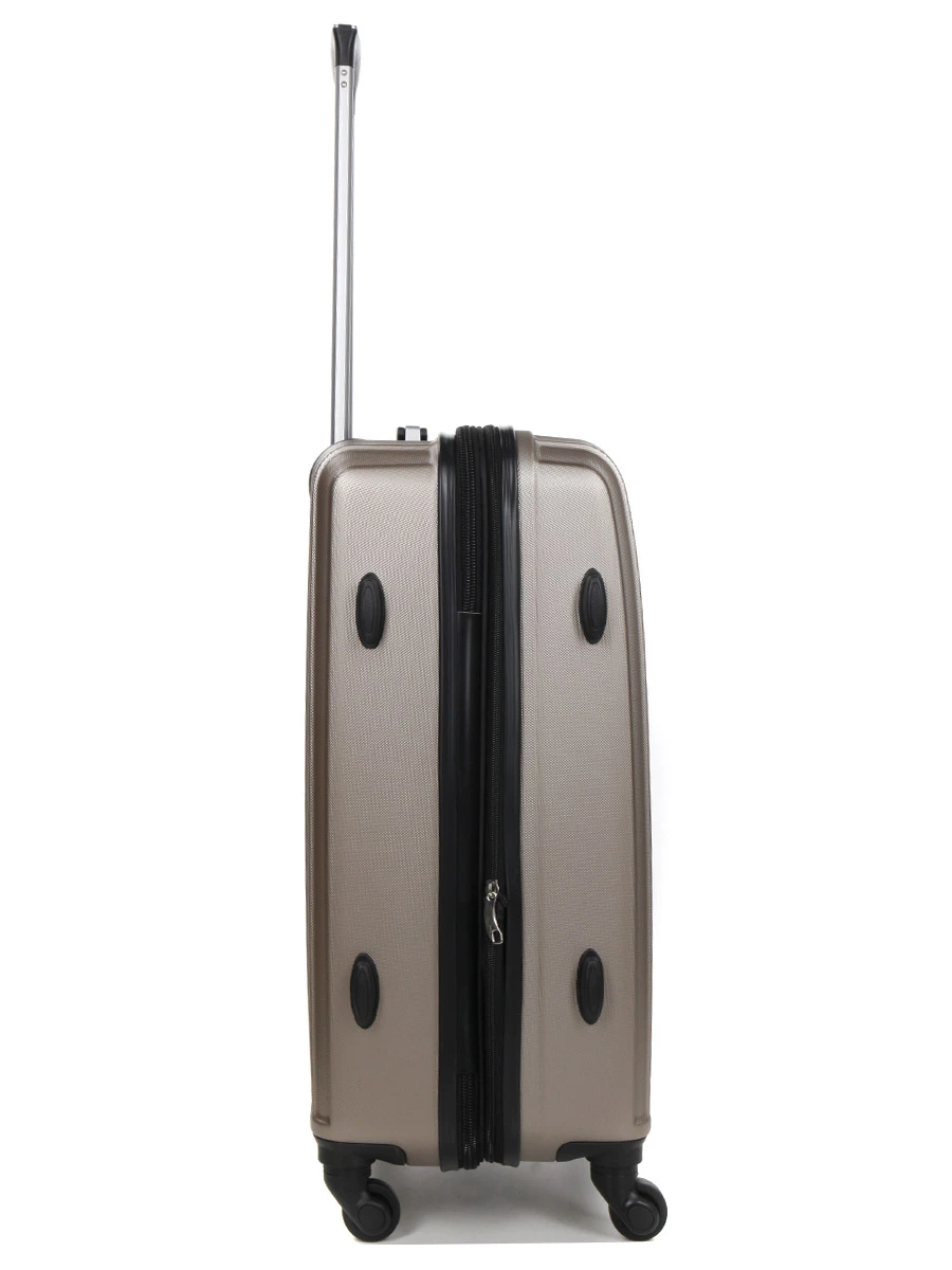La valise Madisson Riyad 66 cm est parfaite pour les séjours d’une à 2 semaines. Capacité généreuse (et extensible jusqu’à 75 L !), dispositif de roulage fluide et conception résistante promettent des vacances au beau fixe ! Sa coque grainée en ABS lui confère une assez bonne résistance aux éraflures et à l’usure en général. Ses nombreux coloris permettent en prime de l’accorder aisément au look des voyageurs attentifs à leur style en toutes circonstances. Pour encore plus d’atouts, elle est disponible à un prix raisonnable qui ne risque pas de grever plus que de nécessité le budget du séjour.