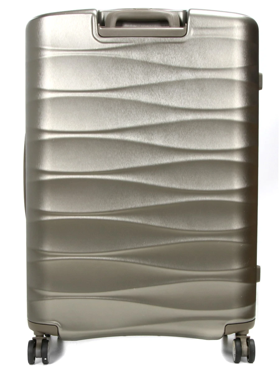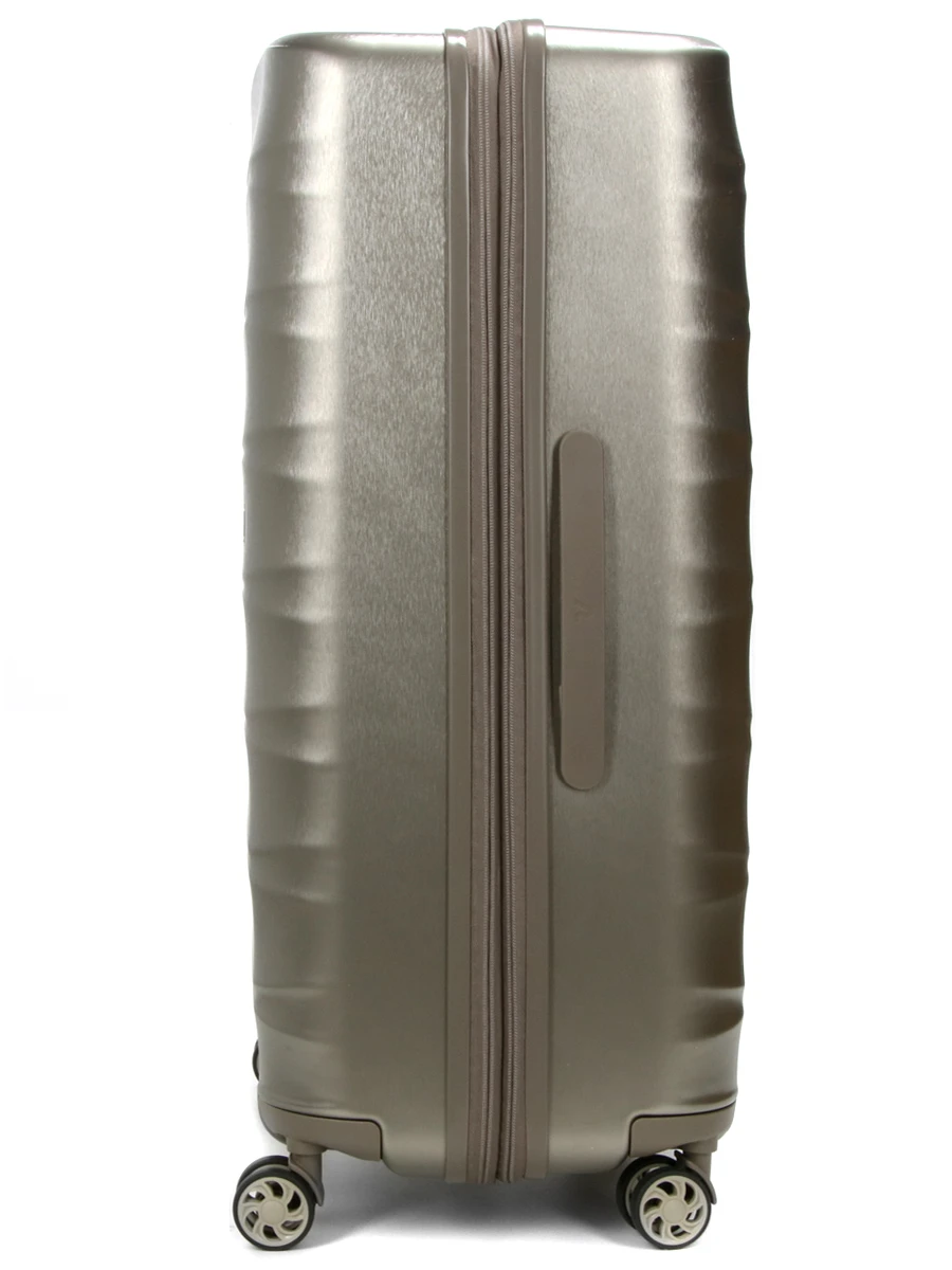 La valise Roncato Stellar 76 cm est résolument chic avec sa coque au fini satiné façon métal brossé. Elle a tout pour plaire aux baroudeurs raffinés à la recherche de praticité et de maniabilité. Elle est idéale pour des séjours de plus de 3 semaines ou pour emporter les affaires de toute la famille pour de courtes vacances. Au retour du séjour, on peut d’ailleurs apprécier que son grand volume de 103 L peut être accru de 14 L à l’aide de son soufflet extensible zippé. Sa coque en mélange de polycarbonate et d’ABS lui confère en prime une excellente solidité face aux chocs et autres aléas du transport.
