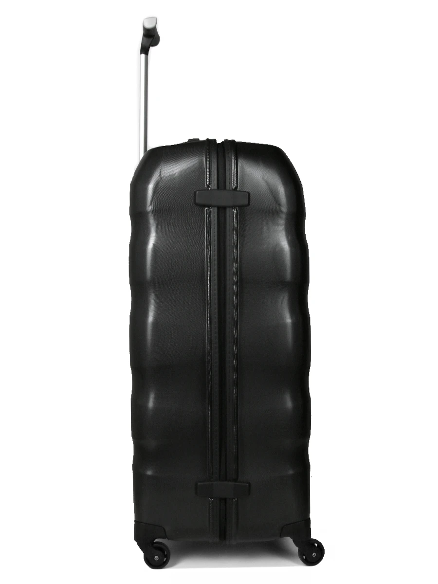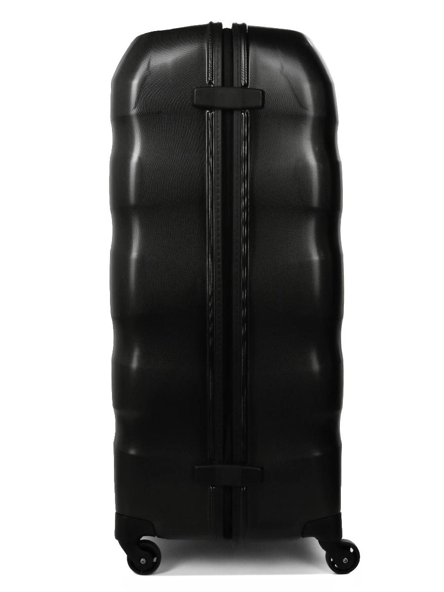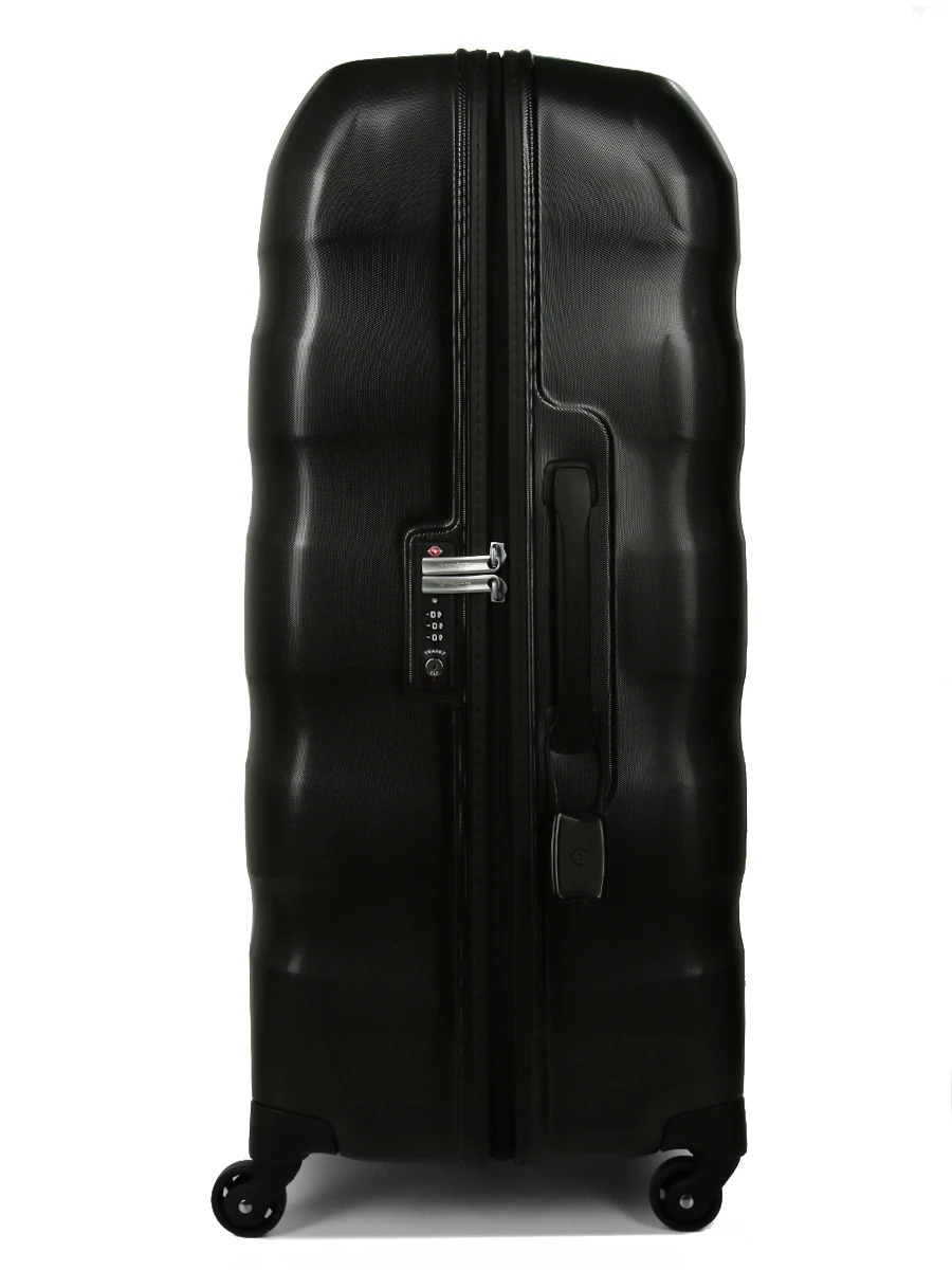 Côté extérieur, cette grande valise Samsonite Engenero Diamond a pensé à tout. Tout d’abord, pour vous offrir des déplacements aussi agréables que possibles, elle est ultra légère (uniquement 4.1 kg) malgré son maxi volume. Ensuite, elle est dotée d’une poignée de traction télescopique ajustable, directement intégrée à la coque pour un gain de place et montée sur 4 roues multidirectionnelles assurant une parfaite maniabilité.