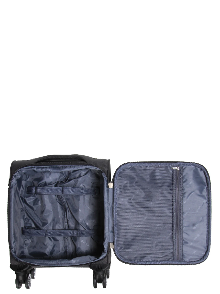 La valise underseat Worldline Anvers renferme un compartiment doublé muni de 4 sangles de maintien réglables. Là, un peu de linge et un petit kit de toilette trouvent une place sans encombre. Bijoux et autres petits accessoires peuvent être rangés dans sa poche intérieure en mesh. A l’avant, une dernière poche à zip permet de laisser à portée de main certains effets personnels comme le passeport, par exemple.